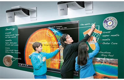 Favorisez l'apprentissage avec PointWriteLe maintien de l'implication et de l'engagement des étudiants est au cœur du concept Smart Classroom de BenQ. En intégrant simplement au MW855UST la dernière technologie PointWrite, nous offrons un moyen formidable de permettre à plusieurs étudiants d'apporter, ensemble, leur contribution. BenQ amène l'innovation interactive et les solutions tactiles à un autre niveau de simplicité, de facilité et de commandes en révolutionnant l'apprentissage et en permettant aux étudiants de s'impliquer comme jamais auparavant. Les professeurs peuvent maintenant transformer n'importe quel espace en un tableau blanc interactif et demander à 4 élèves de collaborer simultanément grâce aux stylos PointWrite ou simplement à l'aide de leur doigts. |