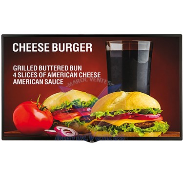 Cet équipement d’affichage polyvalent convient pour de la diffusion de contenus Full HD dans des environnements professionnels (communication corporate dans les halls, les couloirs, les salles de réunion...), retails (restaurants, magasins), les halls d’accueil des hôtels etc.Caractéristiques techniques
