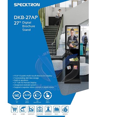 Le support de brochures numérique de 27 pouces de Specktron est la solution idéale pour une variété d'environnements, tels que l'hôtellerie, la vente au détail, les aéroports et les espaces publics. Doté d'une résolution Full HD 1080p, d'un affichage grand angle 178°/178°, d'une luminosité de 250 nits, d'un rapport de contraste de 1300:1, d'un fonctionnement 24h/24 et 7j/7, d'un toucher capacitif (10) pour transmettre des messages avec une clarté éclatante dans un design élégant et fin. Les fichiers photo et vidéo peuvent être lus à l’aide du système Android Quad-core et de 8 Go de mémoire interne.