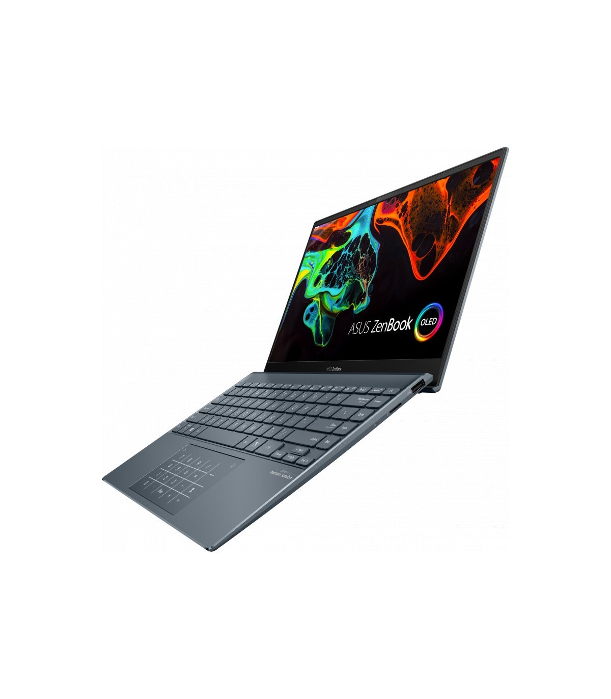 ASUS ZENBOOK UX325EA-KG255T 13.3" OLED FHD I7-1165G7 Processor 2.8 GHz 12M Cache up to 4.7 GHz 4cores 16GB 512G PCIE SSD Integrated GPU Intel Iris X Graphics Win 10 Home PINE GREY Accessoires NUMPAD SLEEVE TYPE A TO LAN TYPE C TO AUDIO JACK