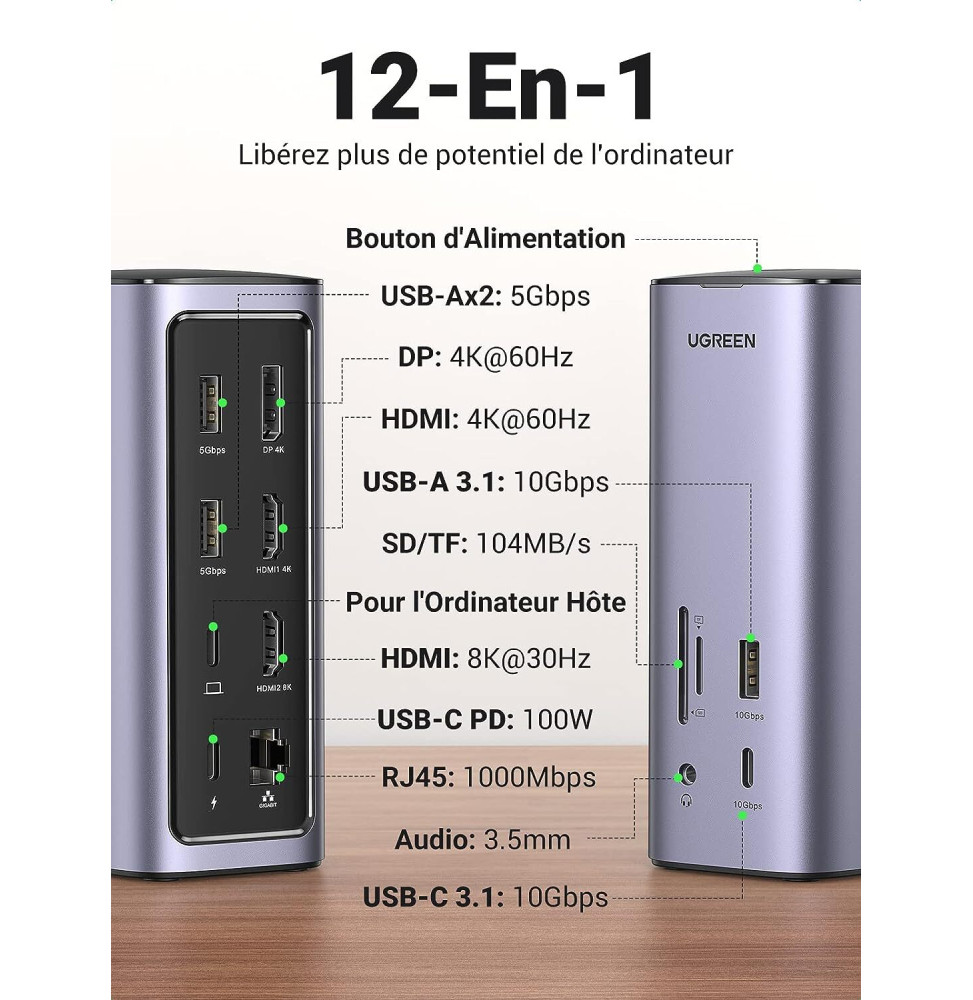 Ugreen Station d'accueil USB-C 8 en 1