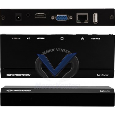 Passerelle de présentation Crestron AirMedia AM-101Présentez sans fil en utilisant des ordinateurs portables et des appareils mobiles.Le Crestron Air Media AM-101 remplace la passerelle de présentation sans fil AM-100 pour toutes les commandes futures. L'AM-101 inclut désormais de nouvelles fonctionnalités pour le support iOS que nous pouvons démontrer via des démonstrations en direct prévues avec le contact de l'équipe des systèmes de salle de conférence: sales@conferenceroomsystems.com. L'AM-101 Air Media inclut toutes les fonctionnalités de présentation sans fil pour plusieurs plates-formes présentes dans l'AM-100, notamment la prise en charge de PC, Mac, Android et iOS. L'AM-101 Air Media inclut également une nouvelle fonctionnalité spéciale concernant les appareils iOS (qui ne peuvent pas être affichés publiquement avant qu'Apple et Crestron ne finalisent les détails légaux), mais nous pouvons partager ces informations lors d'une démonstration en direct. Alors, demandez une démonstration en direct du nouveau Crestron Air Media AM-101 et apprenez-en plus sur ce formidable appareil de présentation sans fil. Avec AirMedia ™, tout le monde peut entrer dans une pièce et présenter sans fil des documents PowerPoint®, Excel®, Word et PDF, ainsi que des photos, à partir de son appareil mobile iOS® ou Android ™ personnel. Les ordinateurs portables MacBook® et PC peuvent également être connectés de manière transparente, facilitant et accélérant les présentations depuis la plupart des appareils. Il n'y a pas de fils à raccorder, pas de réglages compliqués à configurer et aucun système AV ou système de contrôle n'est requis. Connectez-vous simplement via le réseau Wi-Fi® local et commencez à partager du contenu depuis votre appareil portable. - Plus d'images (2)