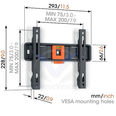 Schéma de trous (VESA)   75 mm x 75 mm, 100 mm x 100 mm, 100 mm x 200 mm, 200 mm x 100 mm, 200 mm x 200 mm