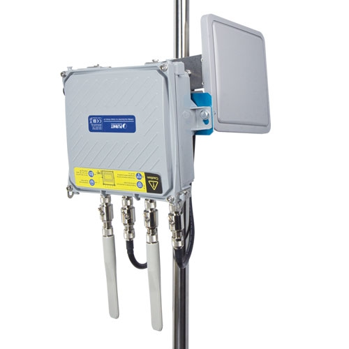 Point d'accès sans fil extérieur durci, double bande 802.11ac, 2.4-5 GHz, 1200Mbps, 4 antennes omnidirectionnelles 5dBi amovibles avec connecteurs N-Type, Modes sans fil Point d'accès, passerelle, répéteur, WDS (PtP/PtMP), WISP, Interfaces Wireless IEEE802.11a/b/g/n/ac, architecture 2T2R ; 1 port LAN 10/100/1000BASE-TX, auto-MDI/MDIX, 24V PoE passif ; 1 port 10/100/1000BASE-TX, auto-MDI/MDIX, Protection surtension et ESD, Boîtier aluminium IP68, Alimentation 48V 0.5A, IEEE 802.3at PoE+